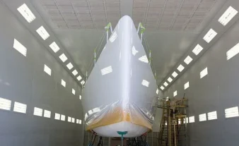 Front Street's advanced boat paint booth ensures a controlled environment for flawless finishes and lasting protection.